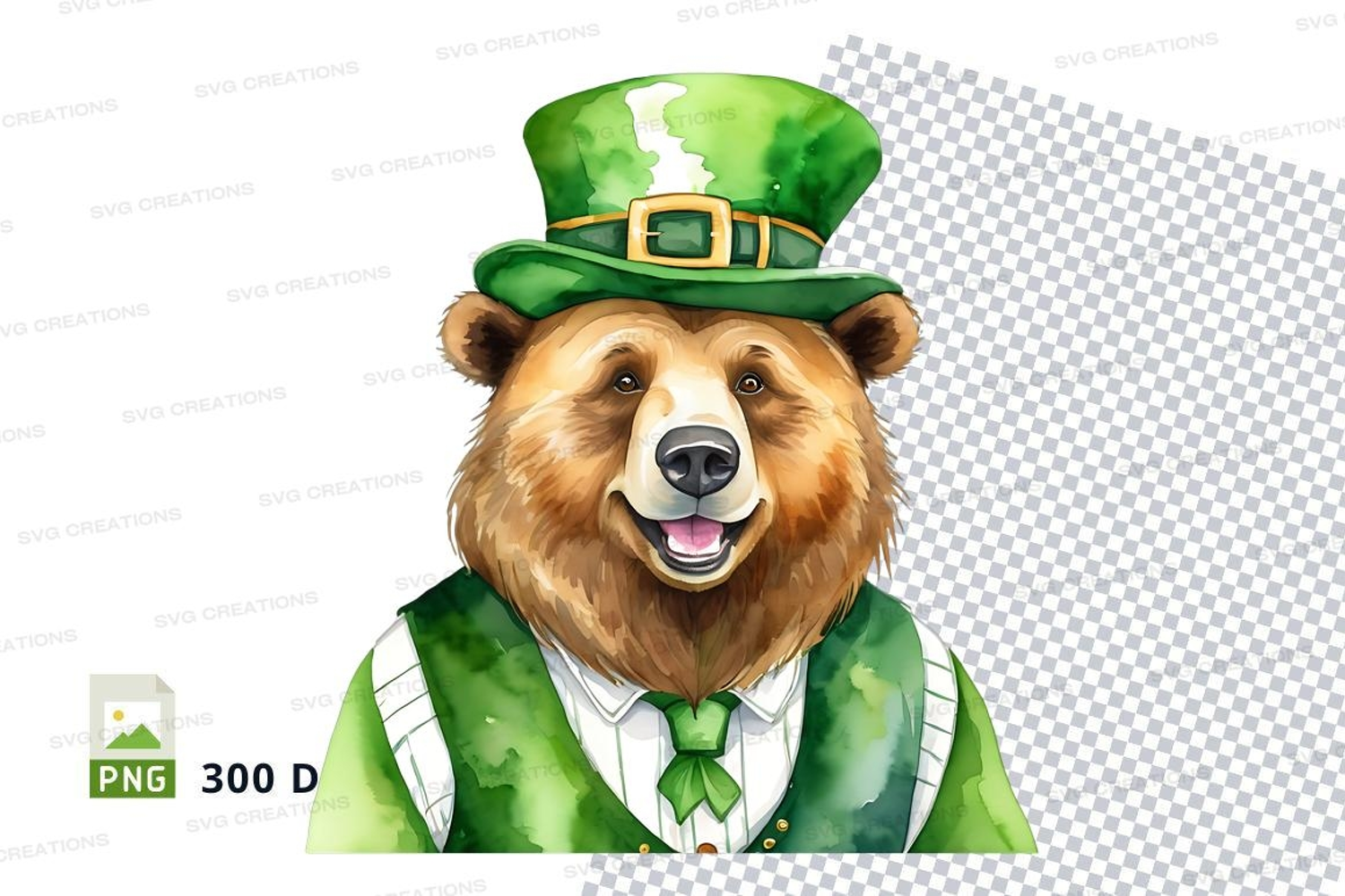 Similar Design Products to Cute bear in leprechaun hat clipart St Patrick's Day PNG