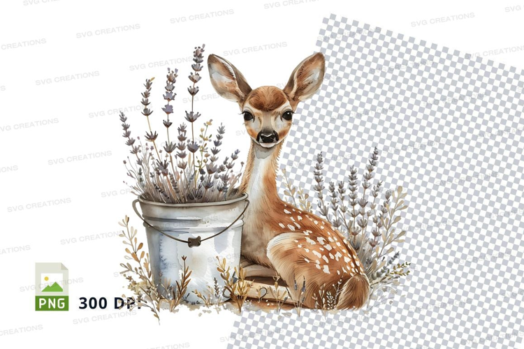 Cute fawn resting by lavender in watering can clipart example image 1