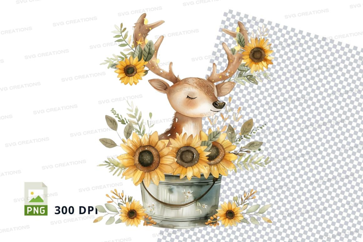 Cute deer clipart with sunflowers in rustic jar illustration example image 1