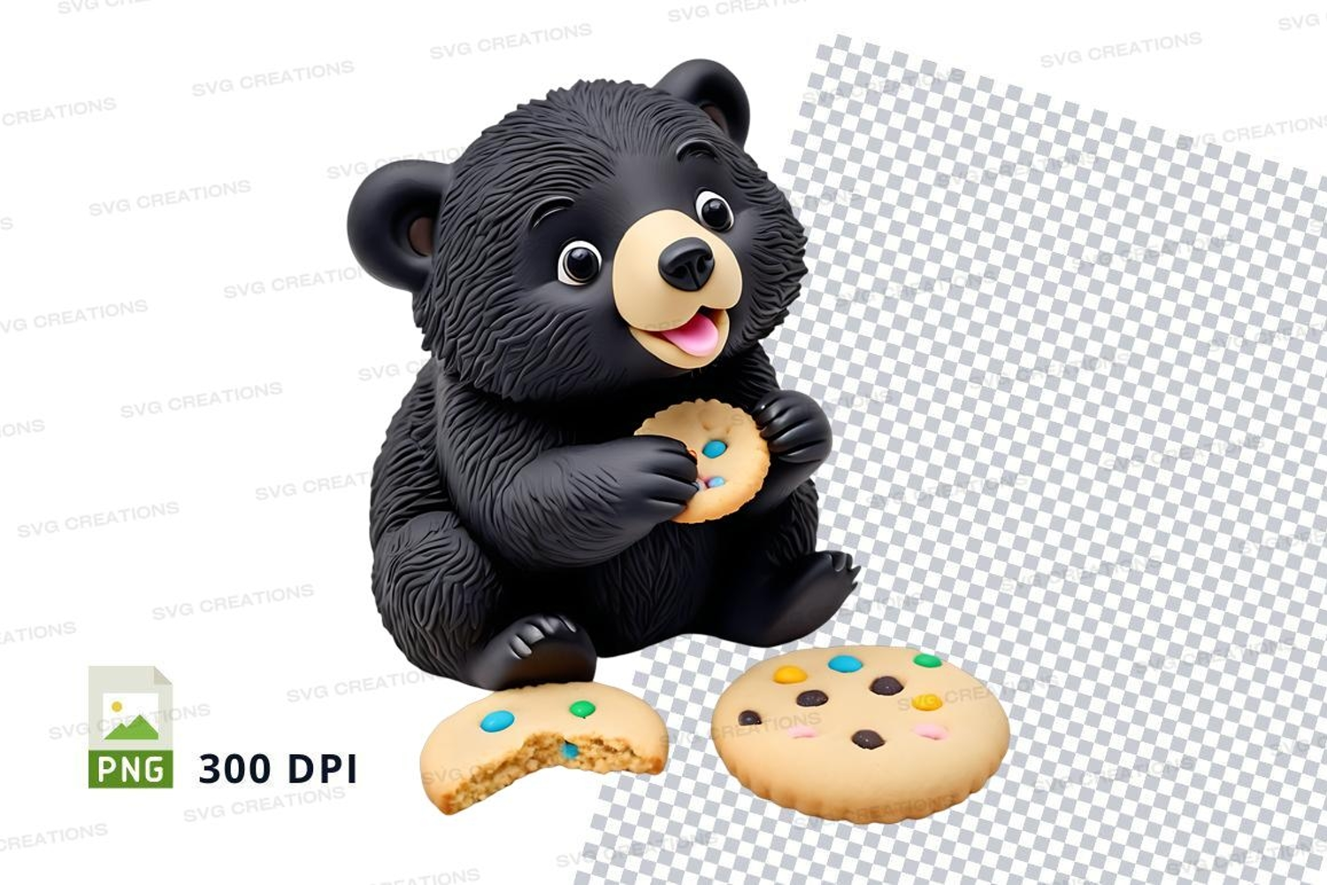 Cute cartoon bear eating donut clipart transparent PNG example image 1