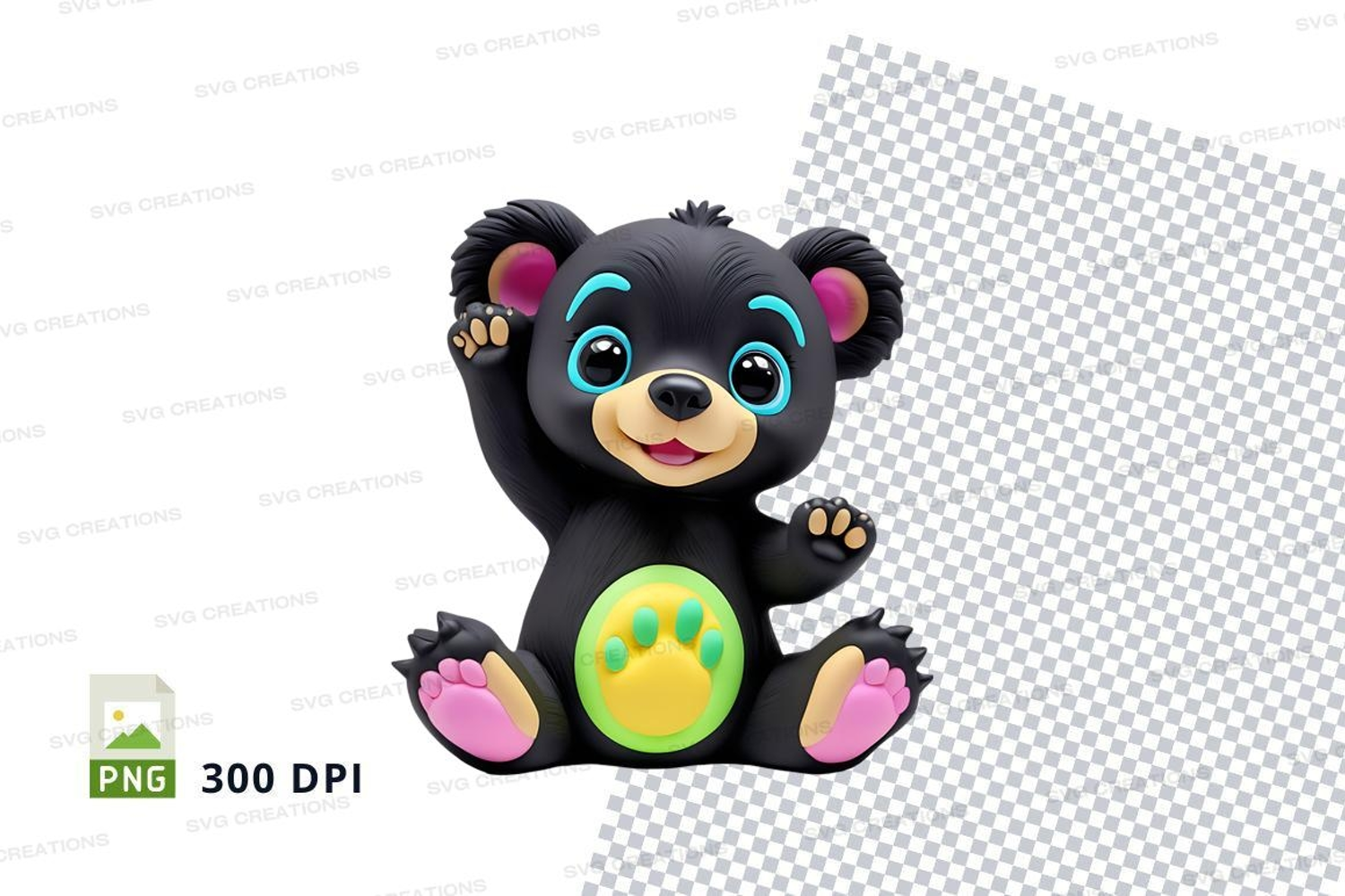 Cartoon Animal Black Cute Colorful Heart Bear Clipart Isolated Sitting