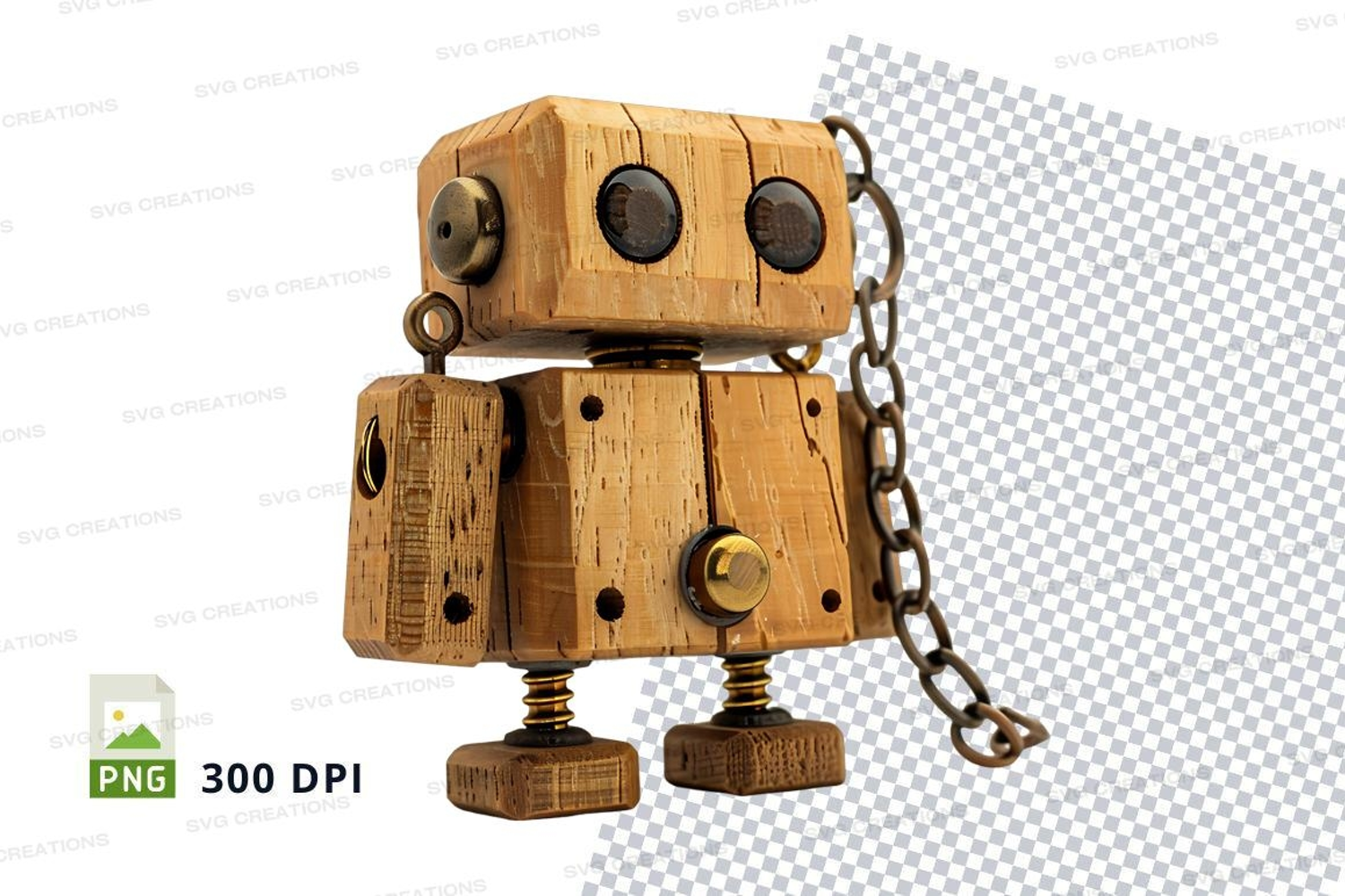 Wooden robot clipart isolated on transparent background PNG example image 1