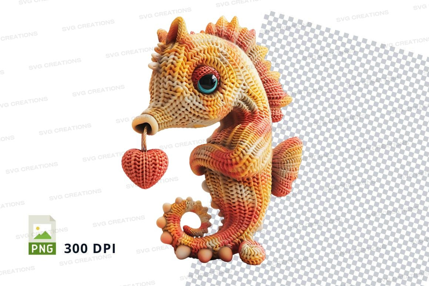 Cute crochet seahorse clipart with strawberry charm PNGwhite example image 1