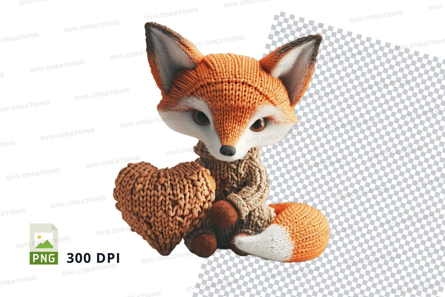 Cute red fox knitted plush toy clipart PNG high detail example image 1