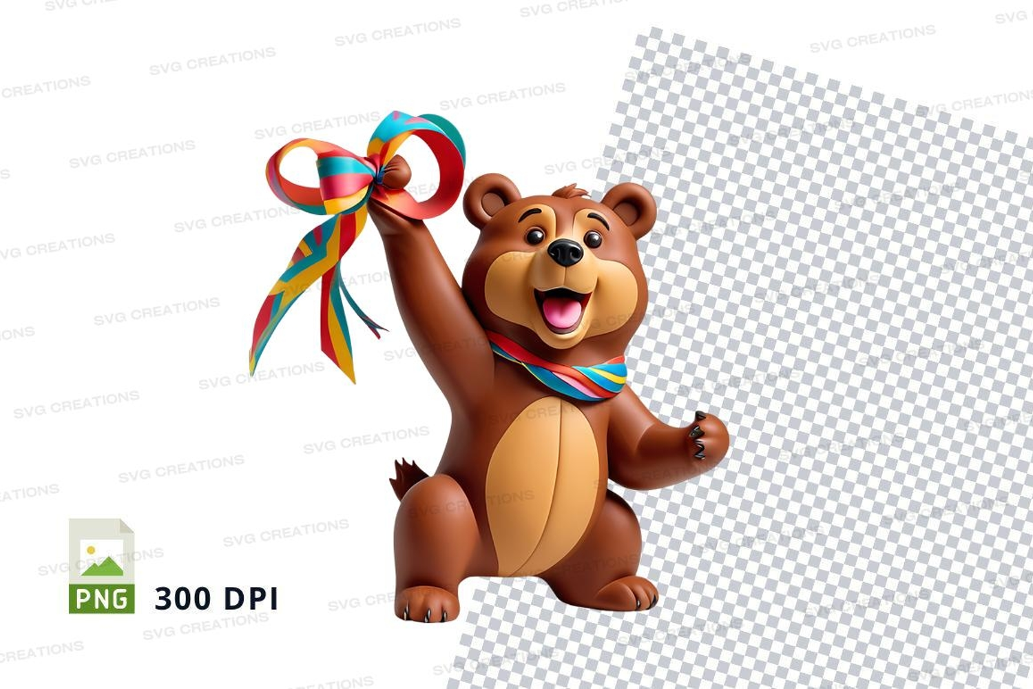 Similar Design Products to Cute teddy bear holding colorful gift ribbons clipart png