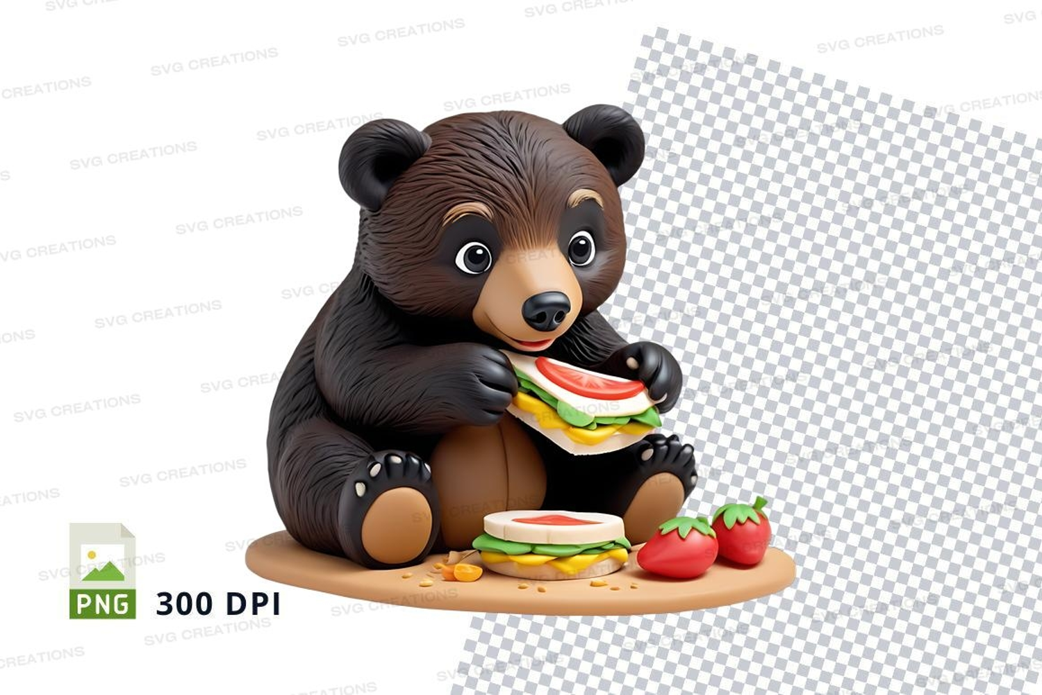 Similar Design Products to Cute brown teddy bear eating watermelon clipart png