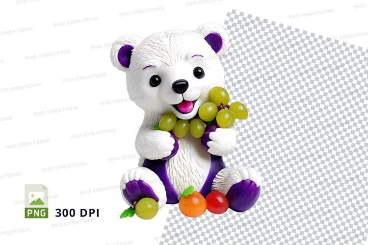 Similar Design Products to Cute purple bear holding colorful fruits clipart png