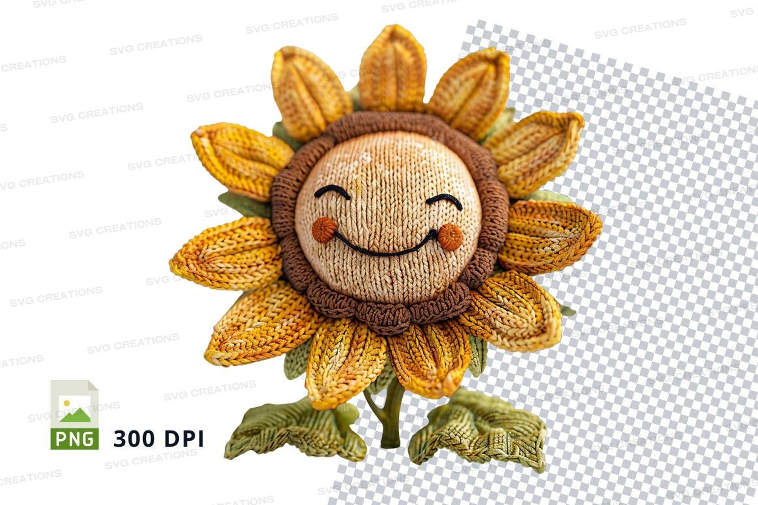 Handmade knitted sunflower clipart smiling face png illustra example image 1