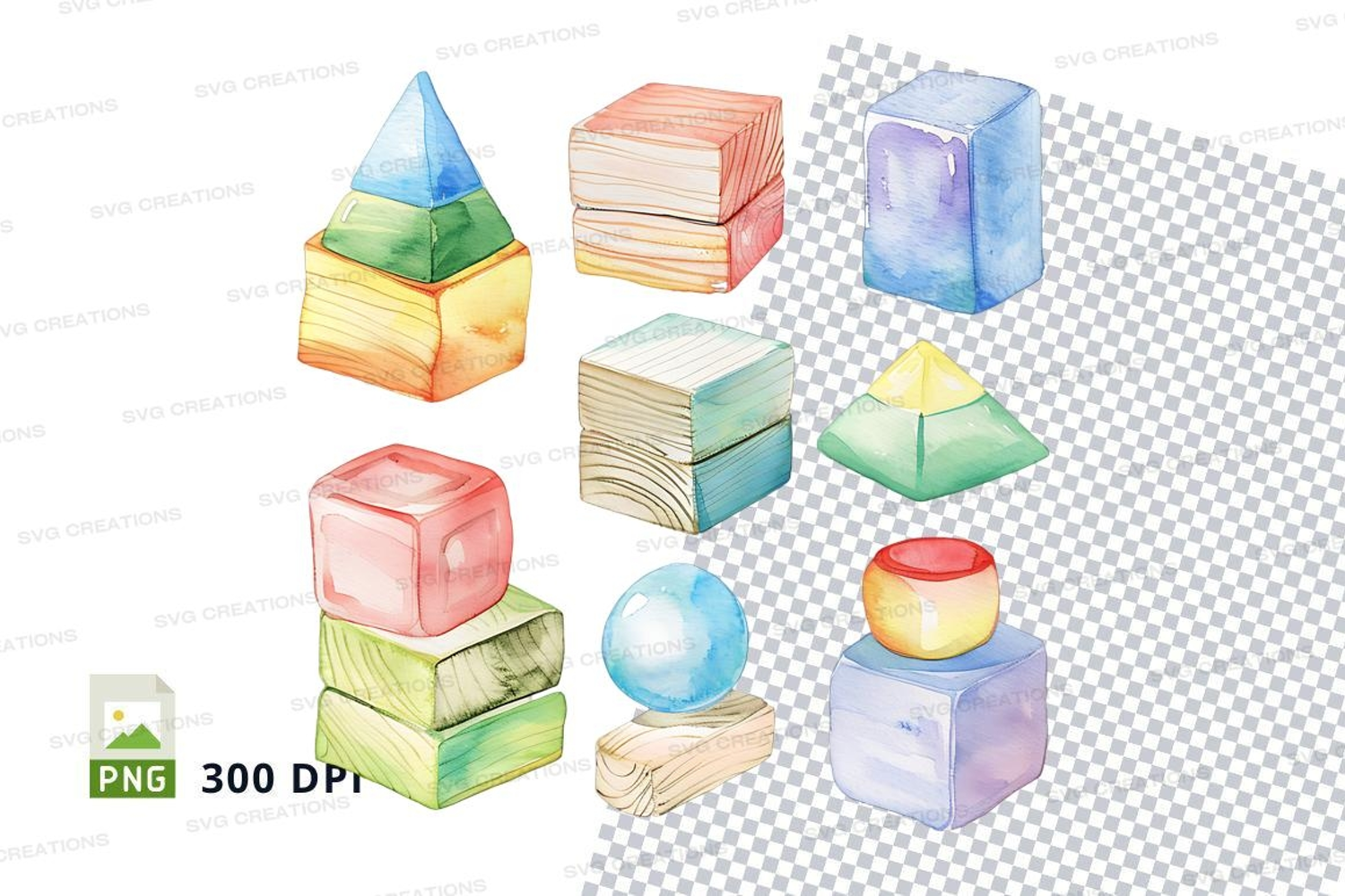 Colorful 3D geometric shapes clipart transparent PNG example image 1