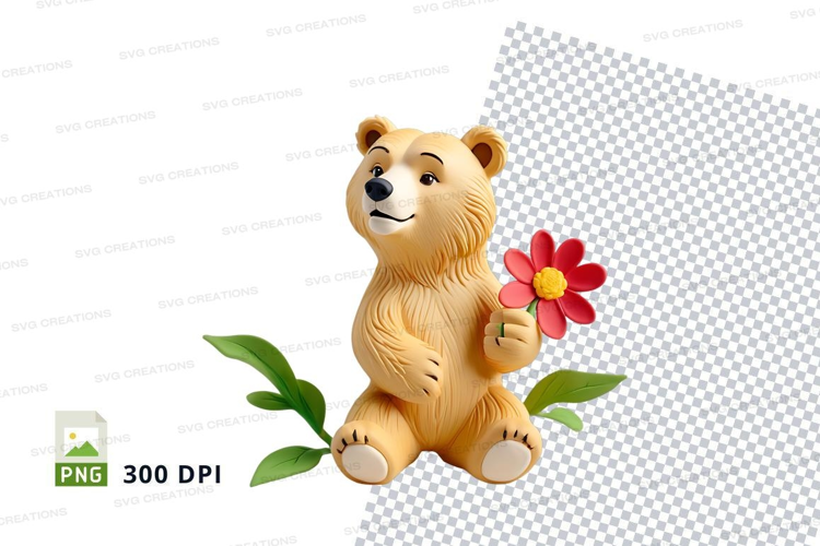 Cute teddy bear holding pink flower clipart transparent PNG example image 1