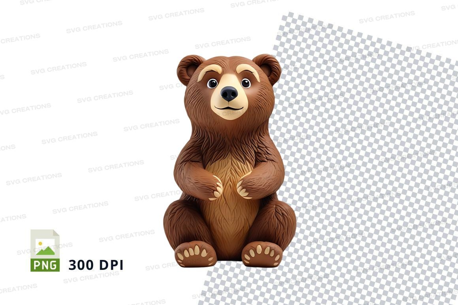 Cartoon Cute Bear Clipart Isolated Brown Sitting Png Transparent