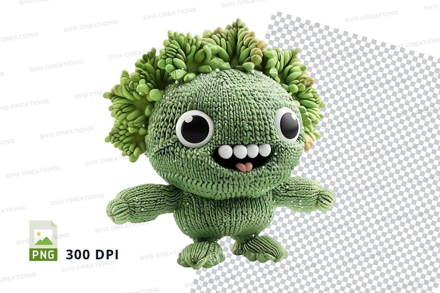 Cute green monster clipart PNG high detail 300 DPI