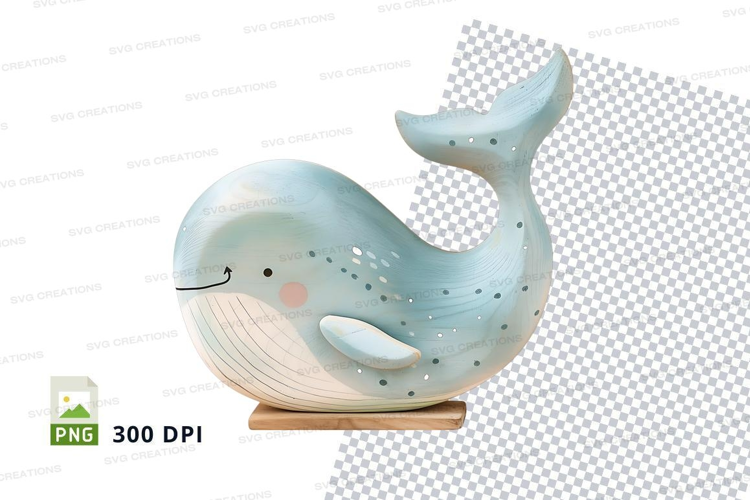 Cute whale clipart swimming on wooden stand isolated PNG example image 1