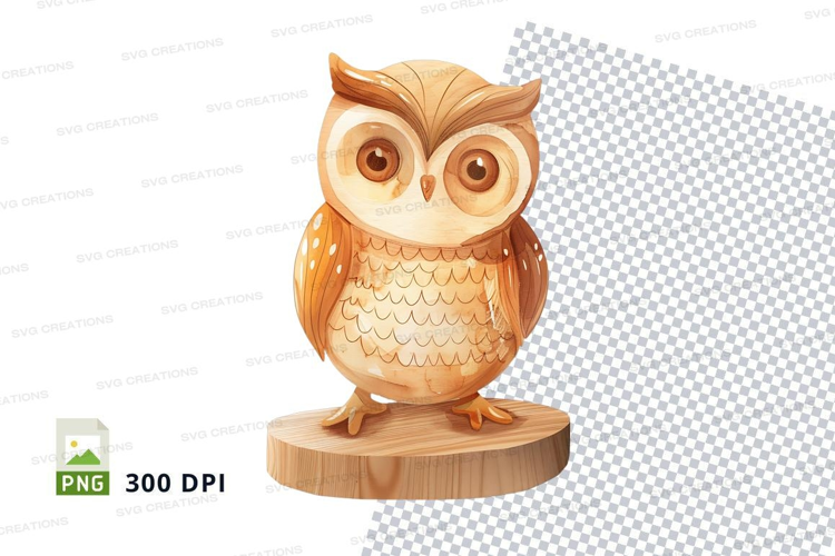 Cute Owl Clipart PNG Isolated Wooden Base Cartoon Animal example image 1