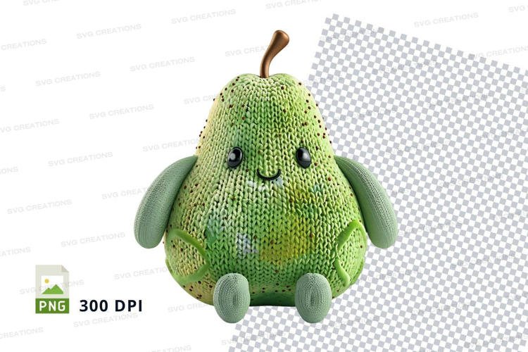 Cute green pear knitted clipart PNG isolated happy fruit example image 1
