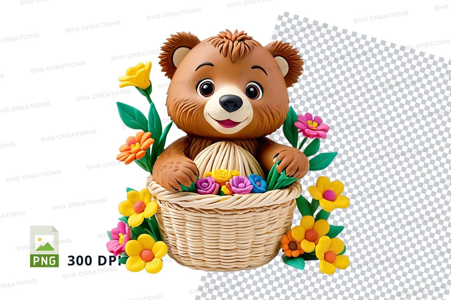 Children Cute Colorful Flower Bear Clipart Png Basket Teddy Woven