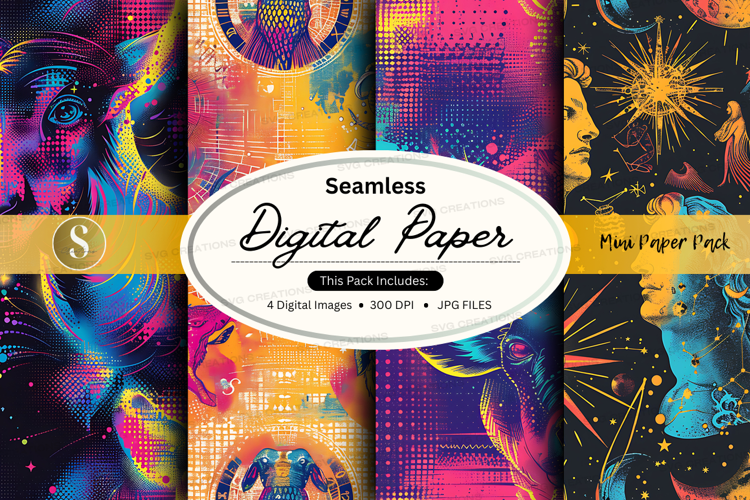 Seamless digital paper pack with vibrant abstract textures a