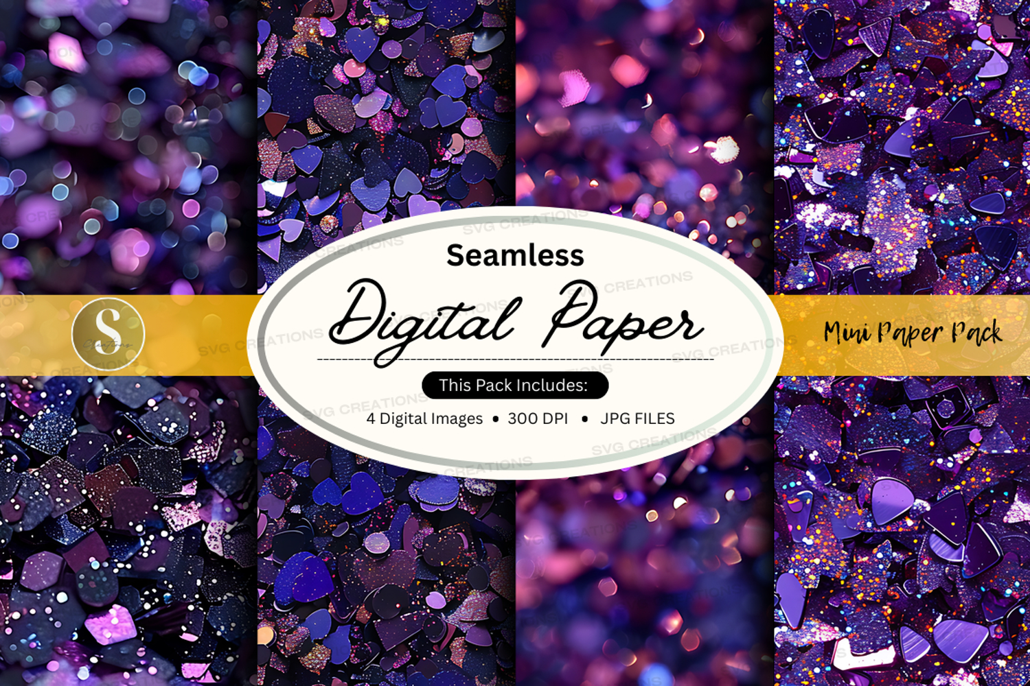 Seamless purple glitter digital paper texture pack backgroun