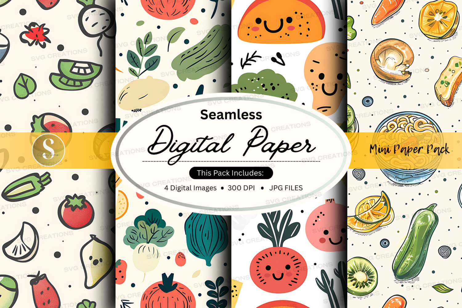 Seamless digital paper pack with fruit and veggie illustrati example image 1