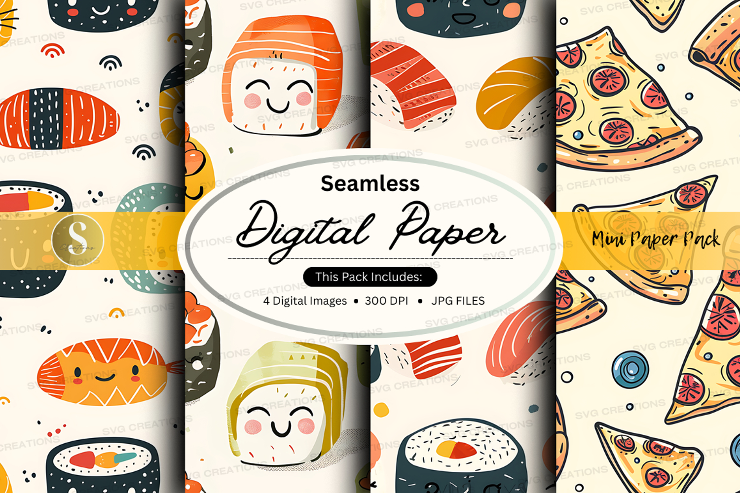 Texture Food Paper Digital Pattern Background Seamless Pizza Emoji Sushi