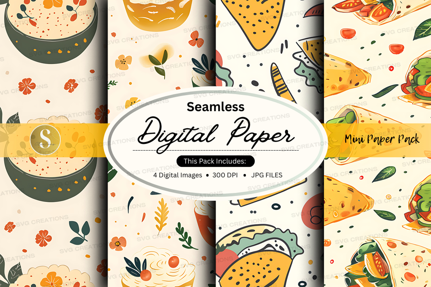 Similar Design Products to Seamless digital paper textures with food illustrations and