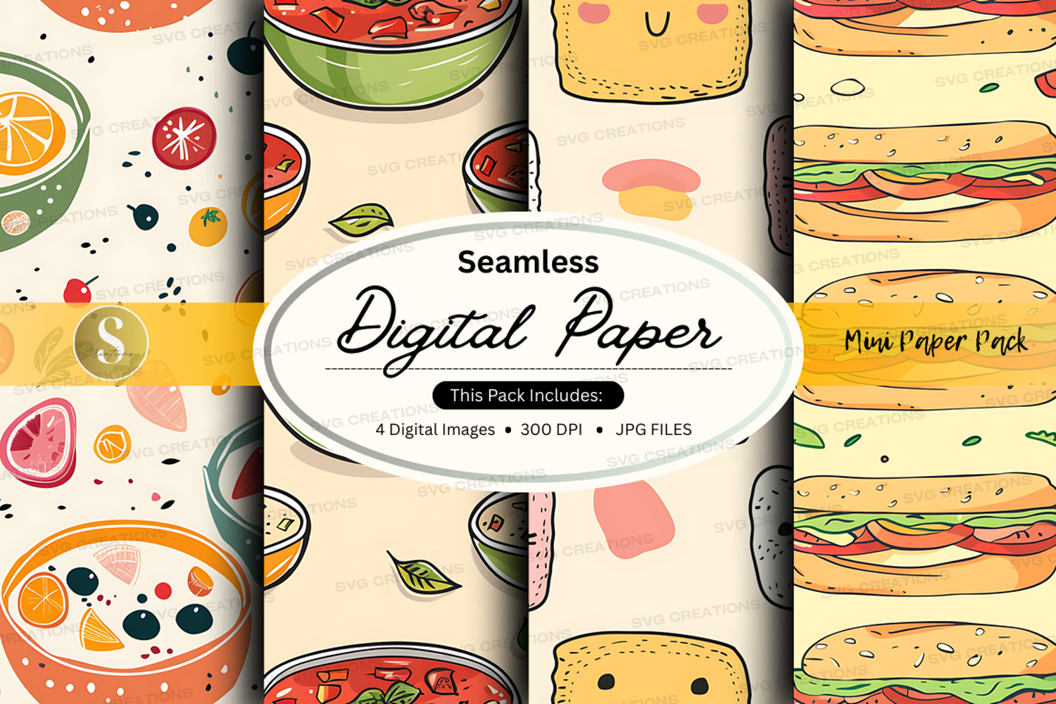 Seamless digital paper pack food textures background design example image 1