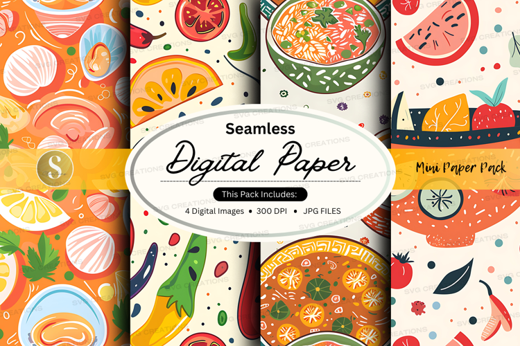 Seamless digital paper textures with food and fruit patterns