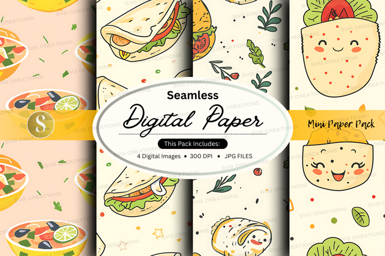 Similar Design Products to Seamless digital paper pack with food and happy faces