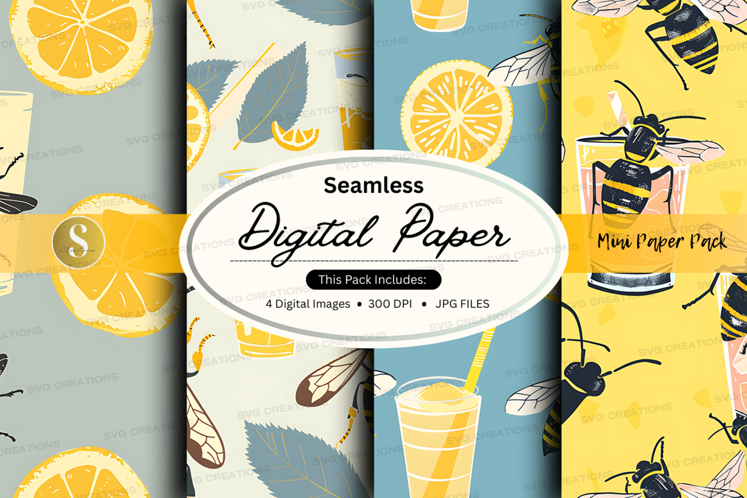 Similar Design Products to Lemon Honey Bee Digital Paper Seamless Pattern Background
