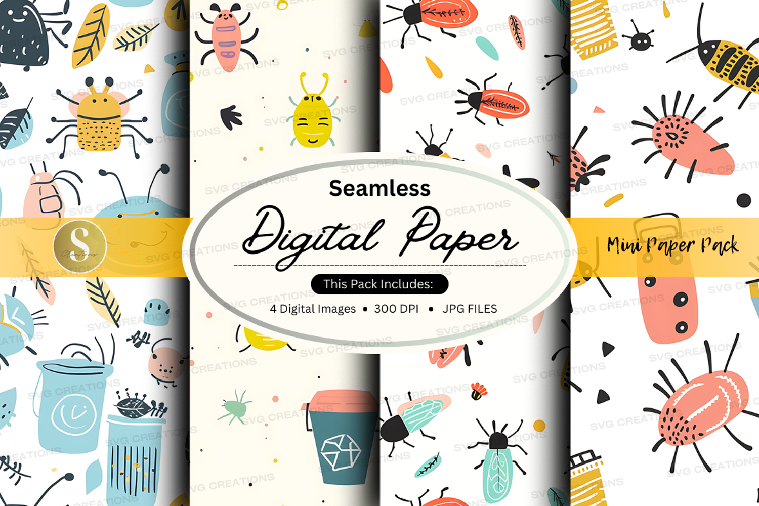 Similar Design Products to Seamless bug digital paper pack colorful vector background