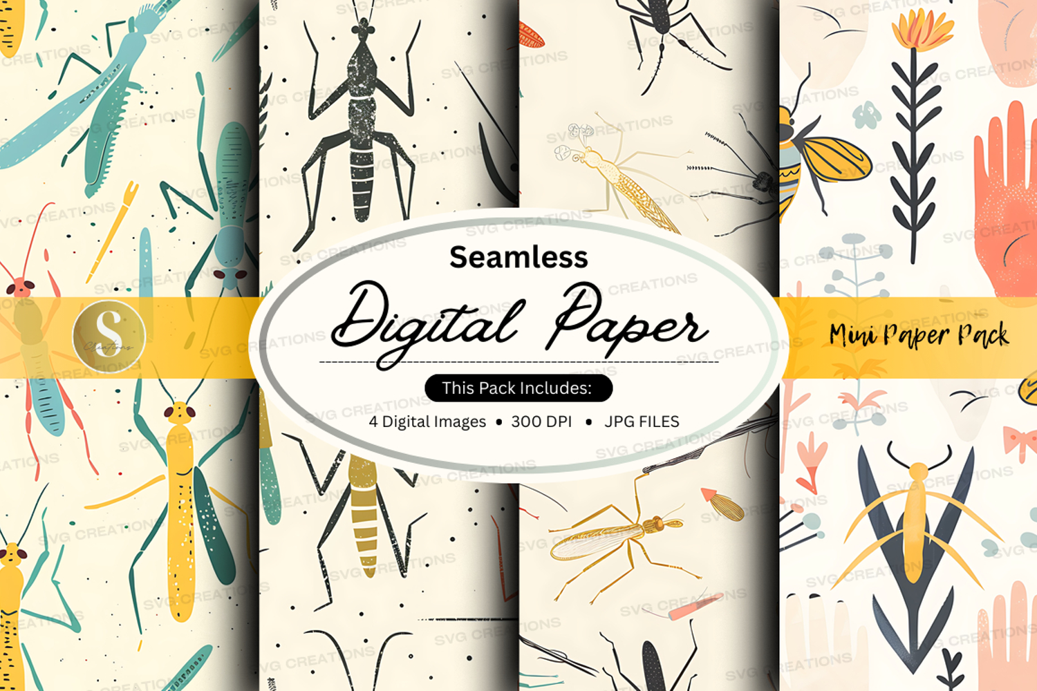 Similar Design Products to Seamless digital paper pack with insects and plants