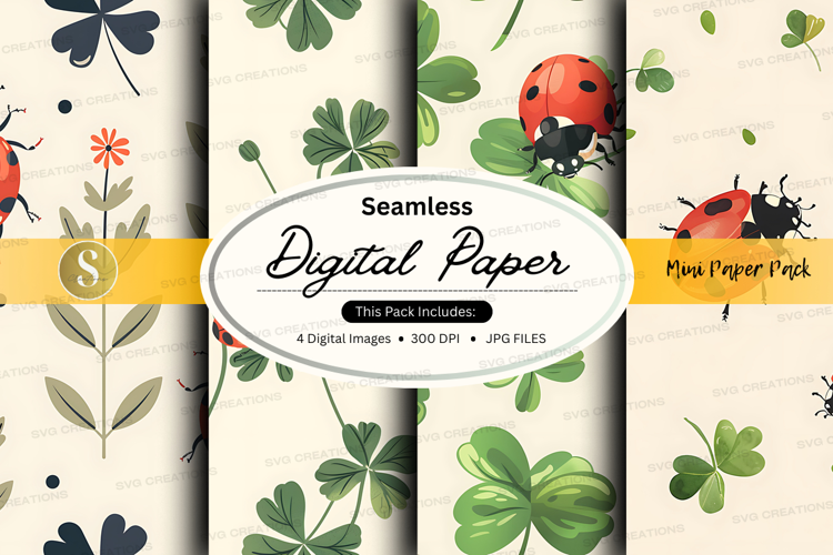 Spring Leaf Paper Floral Digital Pattern Background Seamless Ladybug Clover