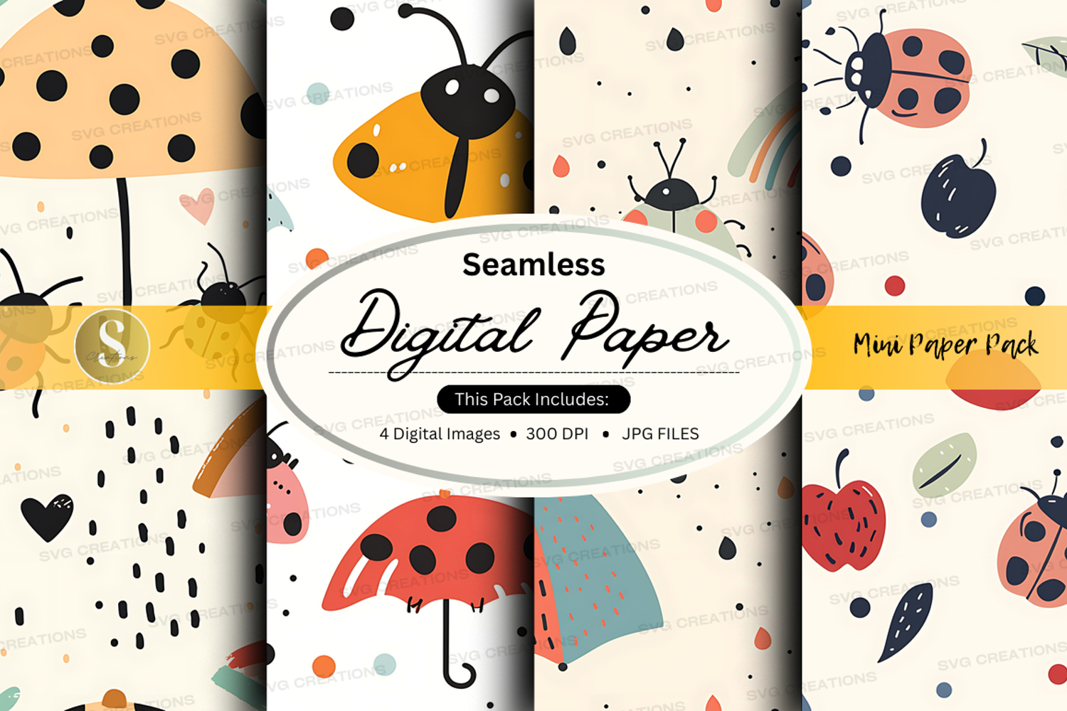 Similar Design Products to Seamless digital paper pack with insects and polka dots