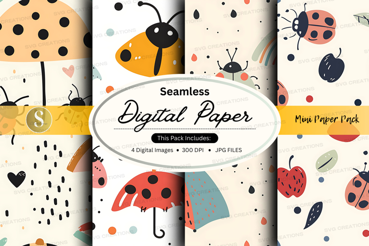 Seamless digital paper pack with insects and polka dots example image 1