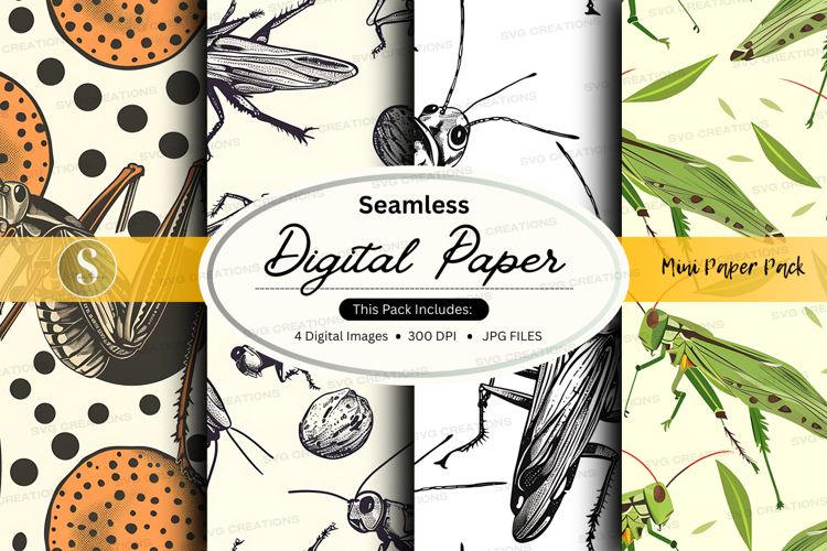 Vintage Craft Scrapbook Paper Digital Pattern Background Printable Seamless Insects
