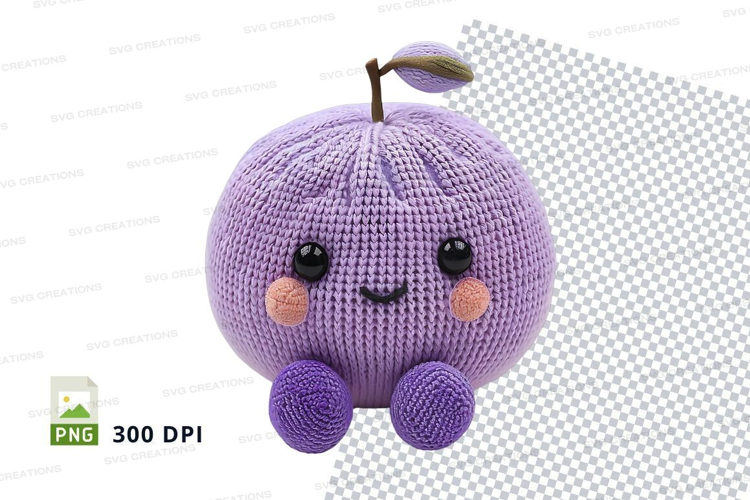 Cute purple crochet apple keychain clipart isolated PNG example image 1
