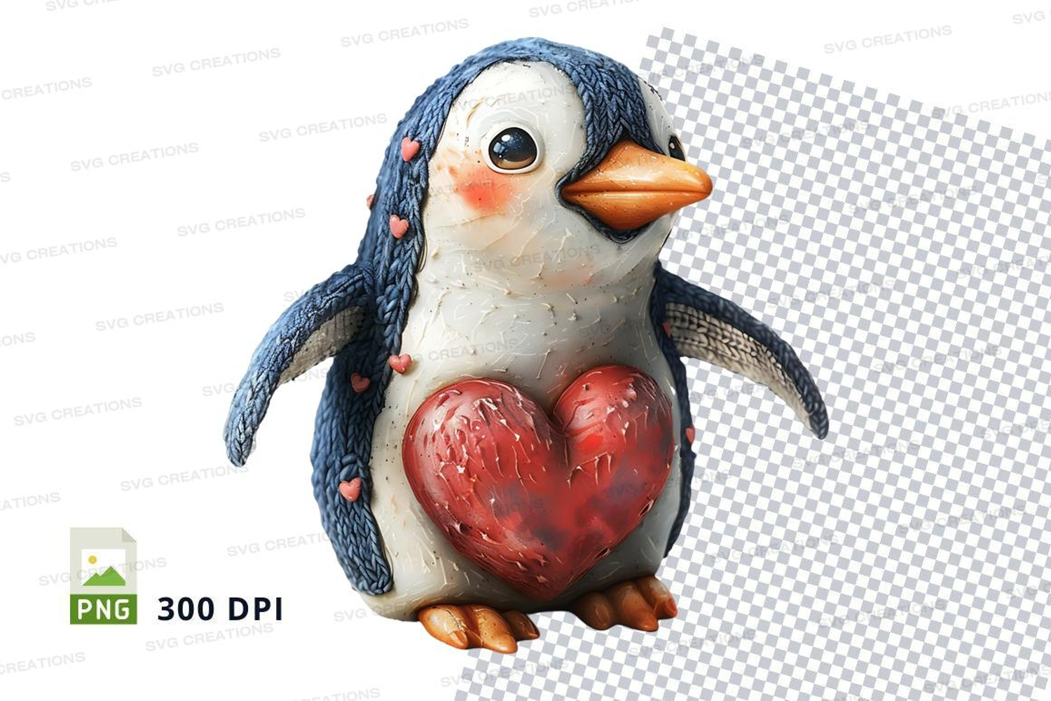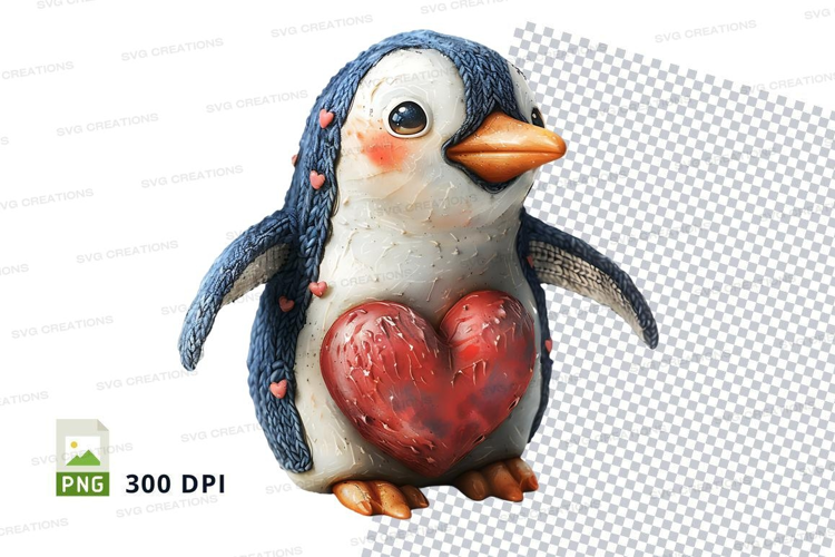 Cute penguin holding red heart clipart transparent PNG example image 1