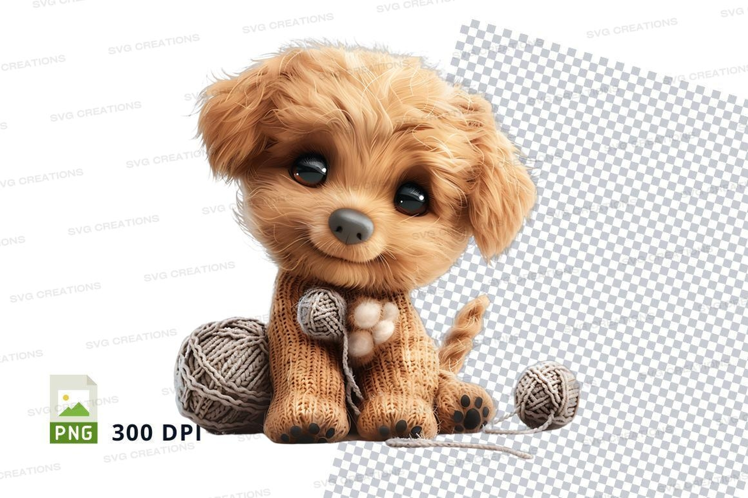 Cute knitting puppy toy with yarn and needles clipart example image 1