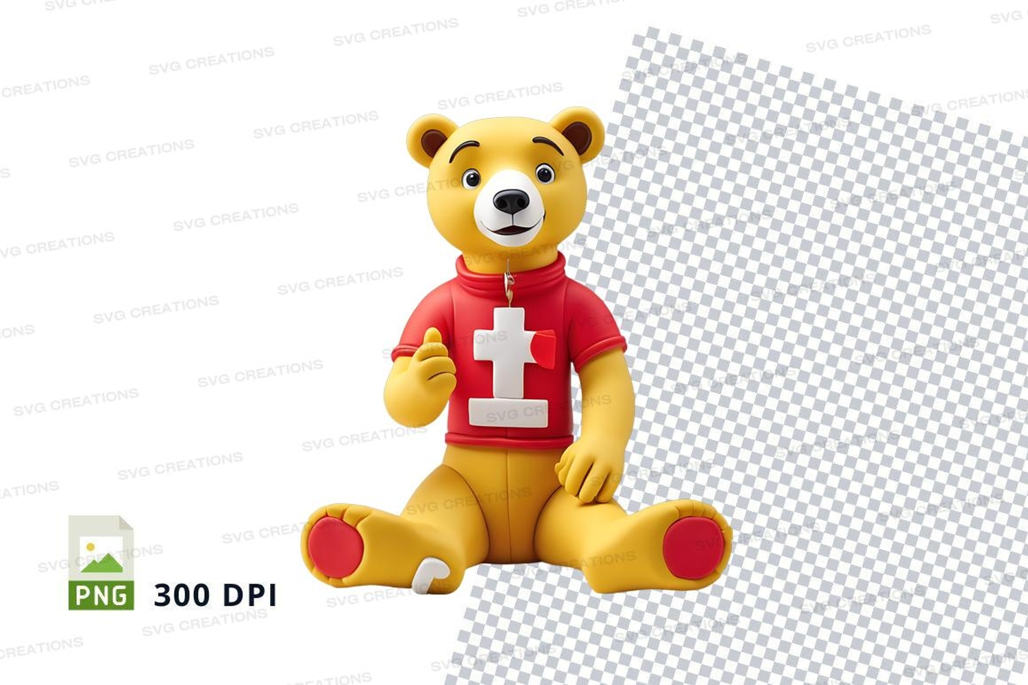 Teddy bear with red cross shirt clipart png transparent back example image 1
