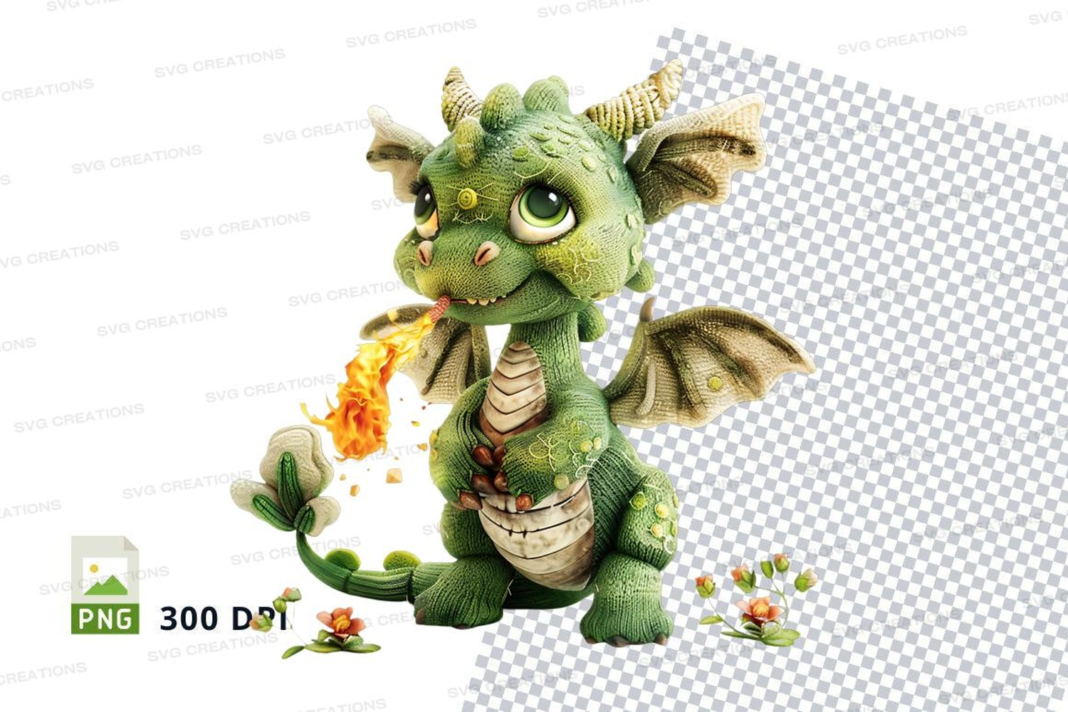 Cute green dragon plush toy holding flower clipart PNG example image 1