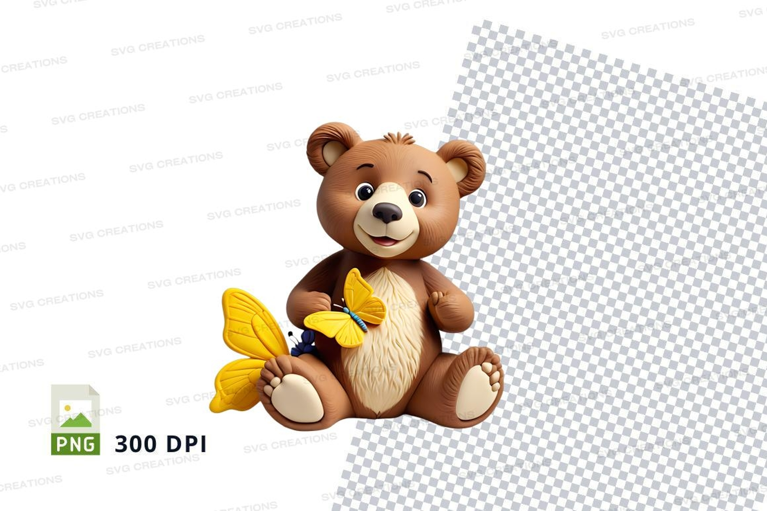 Cute teddy bear holding butterfly clipart transparent PNG example image 1