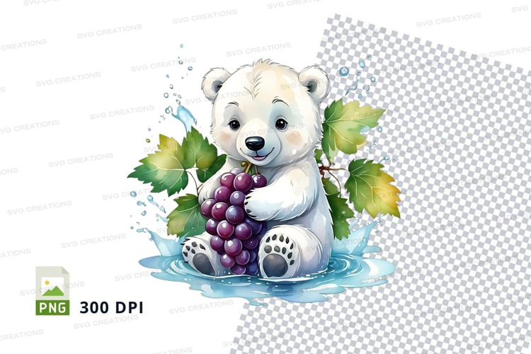 Cute polar bear holding grapes clipart watercolor illustrati example image 1