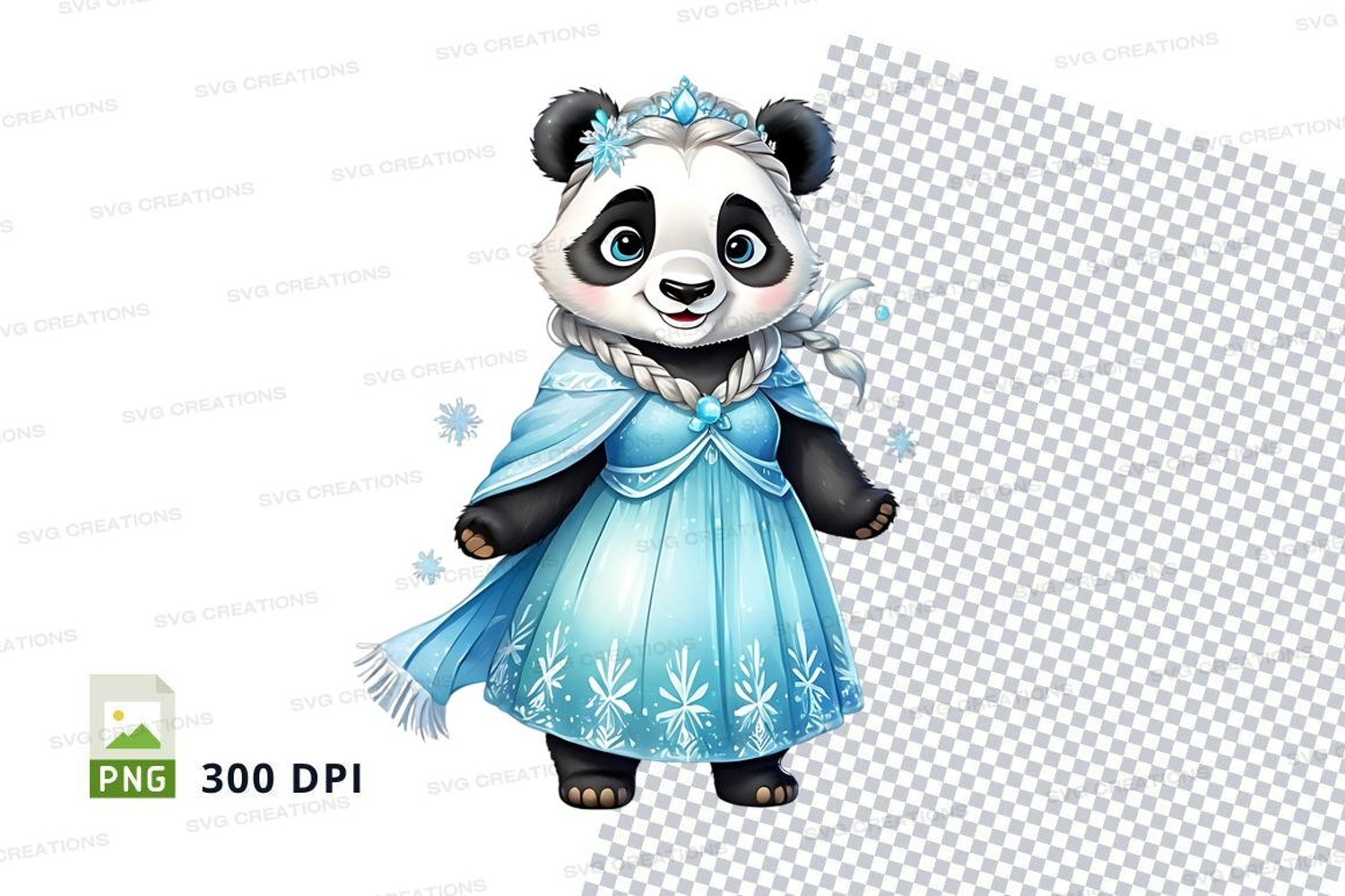 Cute panda clipart in blue princess dress isolated PNG example image 1
