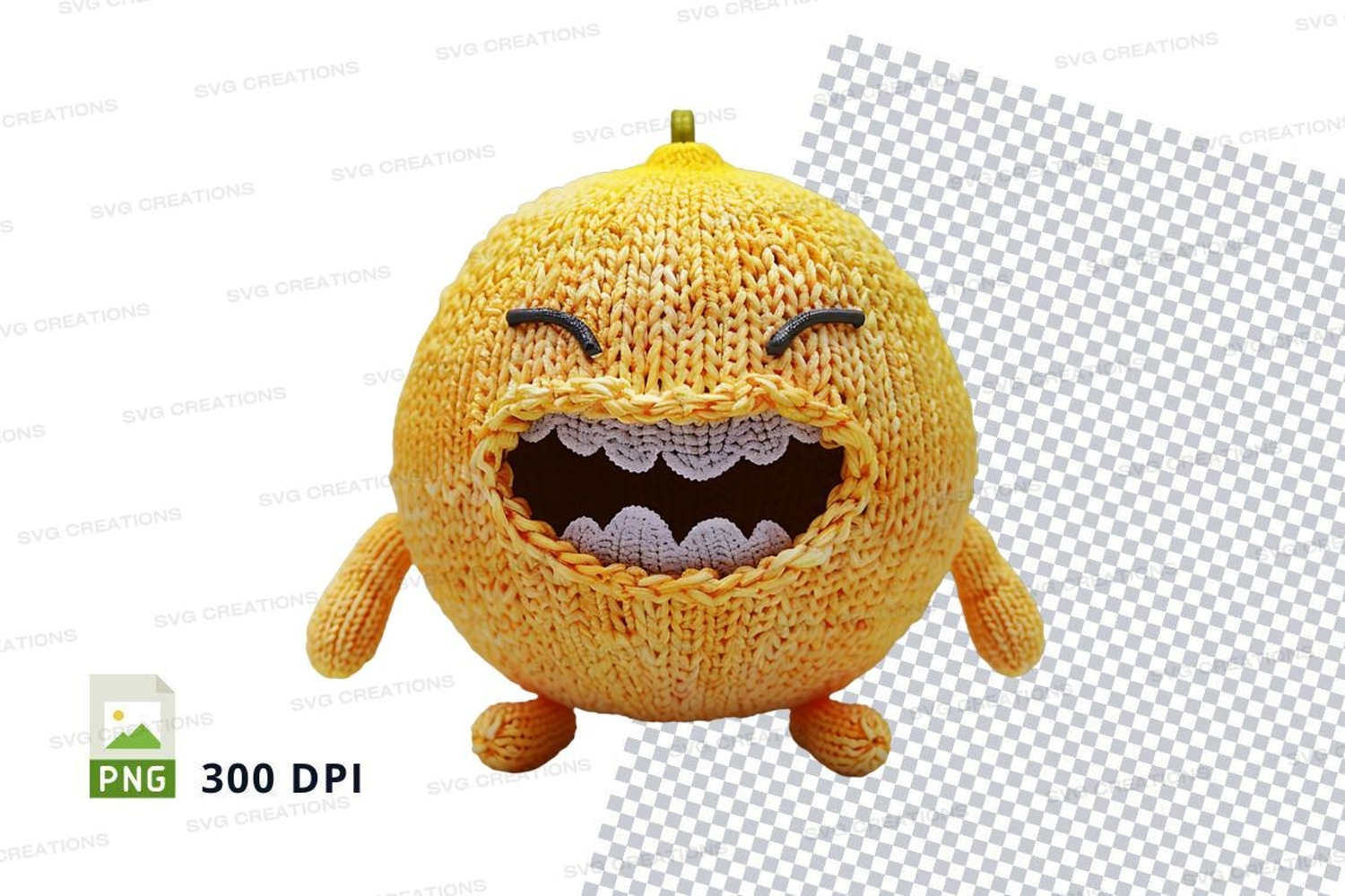 Happy yellow knitted chick clipart laughing isolated PNG example image 1