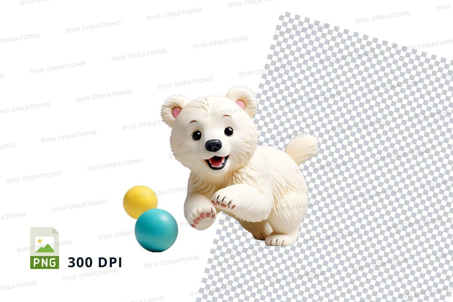 Similar Design Products to Cute white teddy bear playing with colorful balls clipart pn