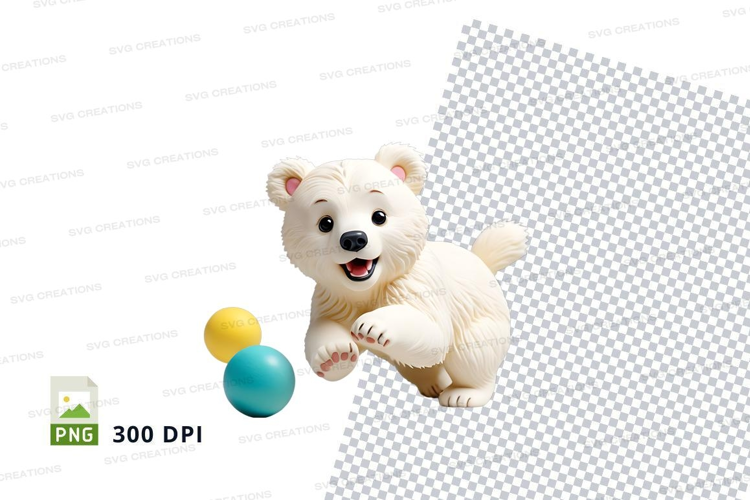 Cute white teddy bear playing with colorful balls clipart pn example image 1
