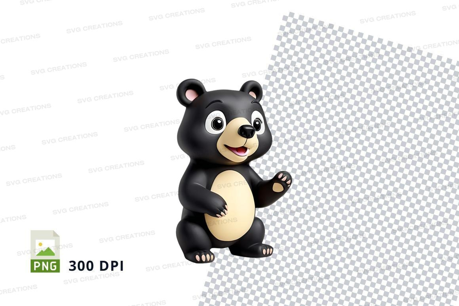 Cartoon Black Cute Friendly Bear Clipart Background Isolated White Waving