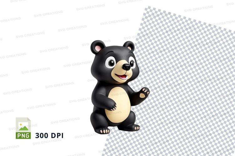 Cute black cartoon bear waving isolated on white background example image 1