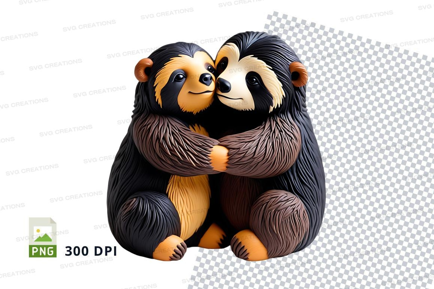 Cute hugging cartoon bears clipart transparent background example image 1