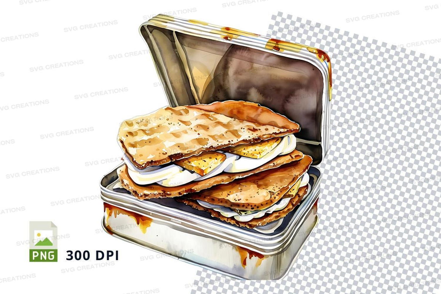 Stacked sandwiches in vintage lunchbox clipart png example image 1